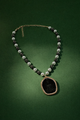 Pearl Chain Necklace with Black Buddha Locket